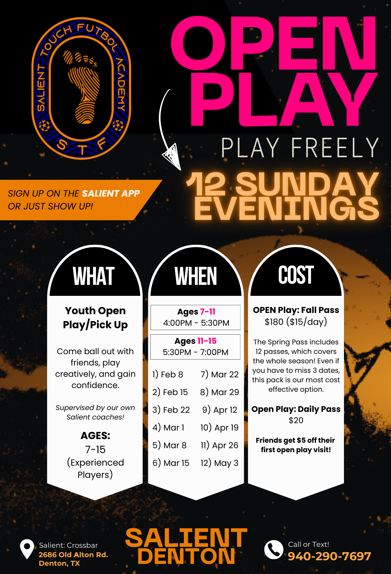 Play freely,play creatively,play confidently. Sign up on the Salient app, or click the link below! Book Here